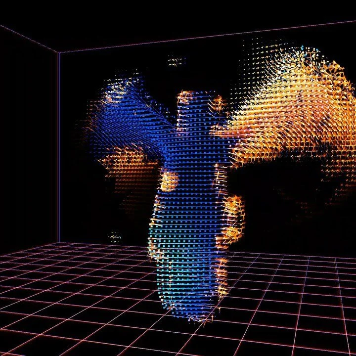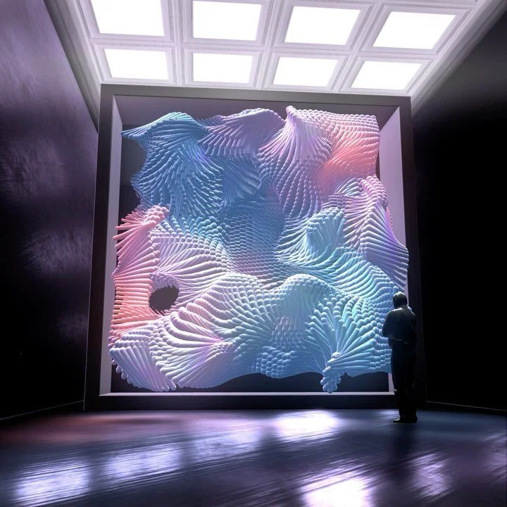 In this doodle, I explore the contrast between classical art and dynamic, motion-responsive particles.