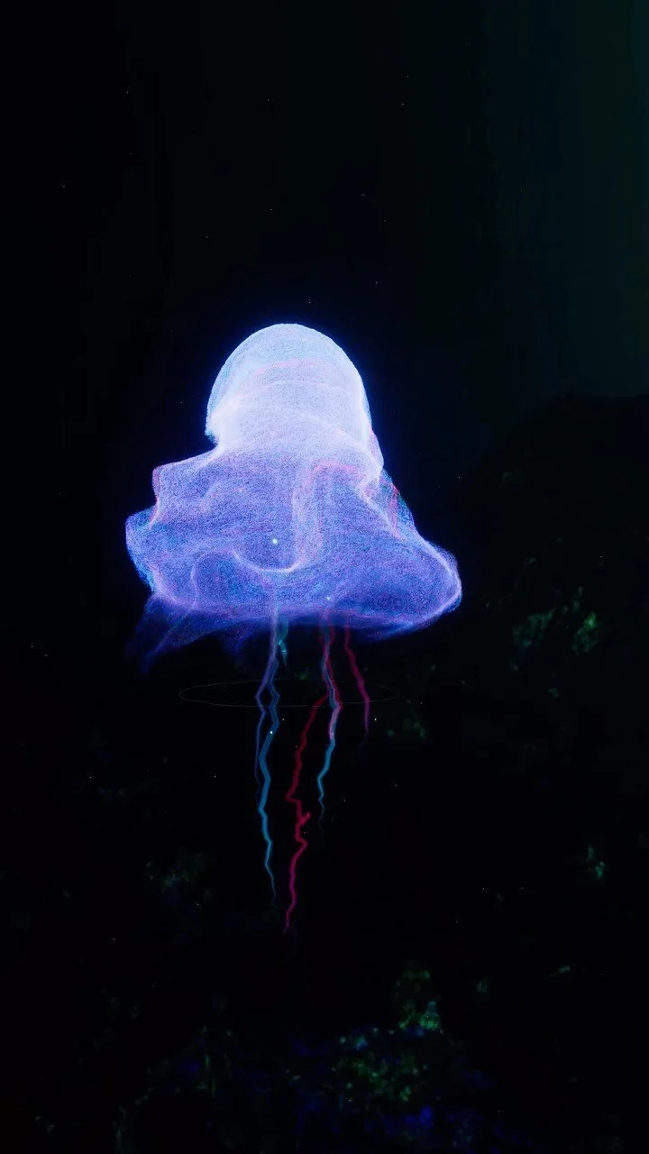 The particles react to movement and generate a vivid illusion of depth and motion in 3D space.